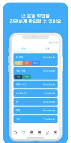 깔끔하고 운동 루틴 추가도 쉽구요 점점 업데이트 되면서 그래프나 이런 거 추가되는 것도 좋아요!